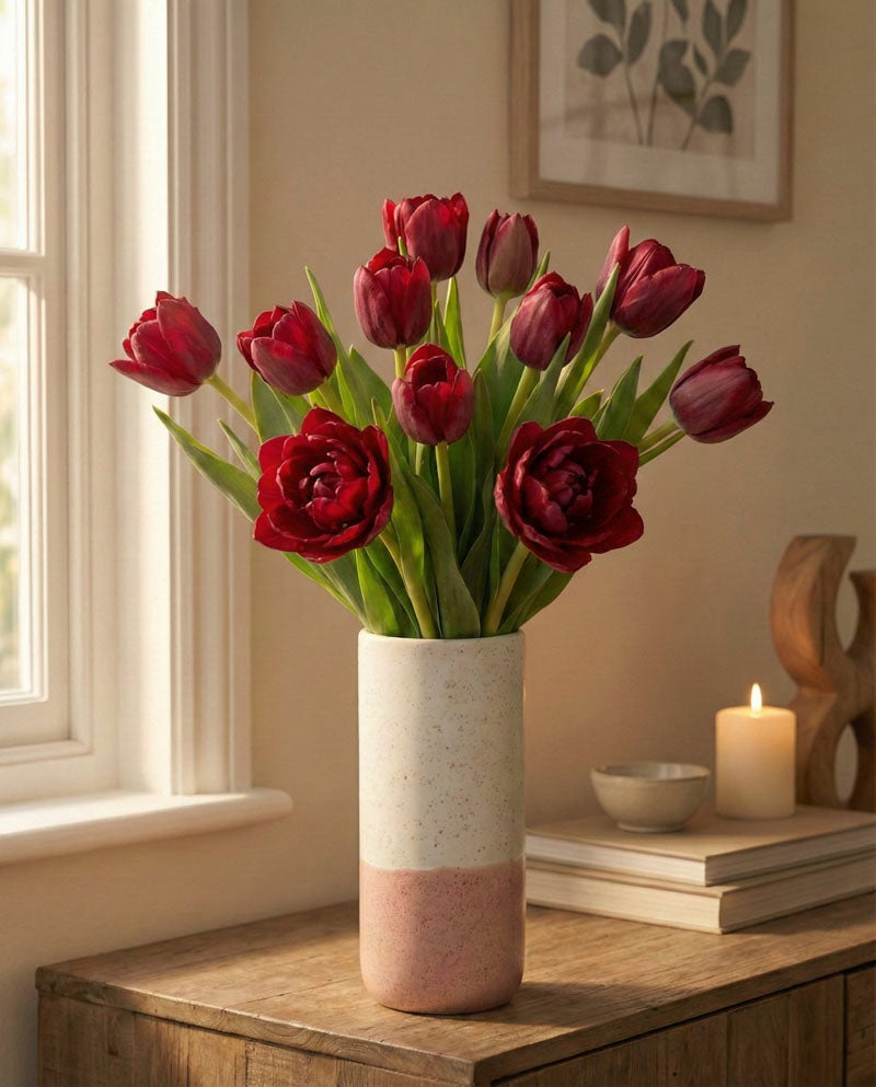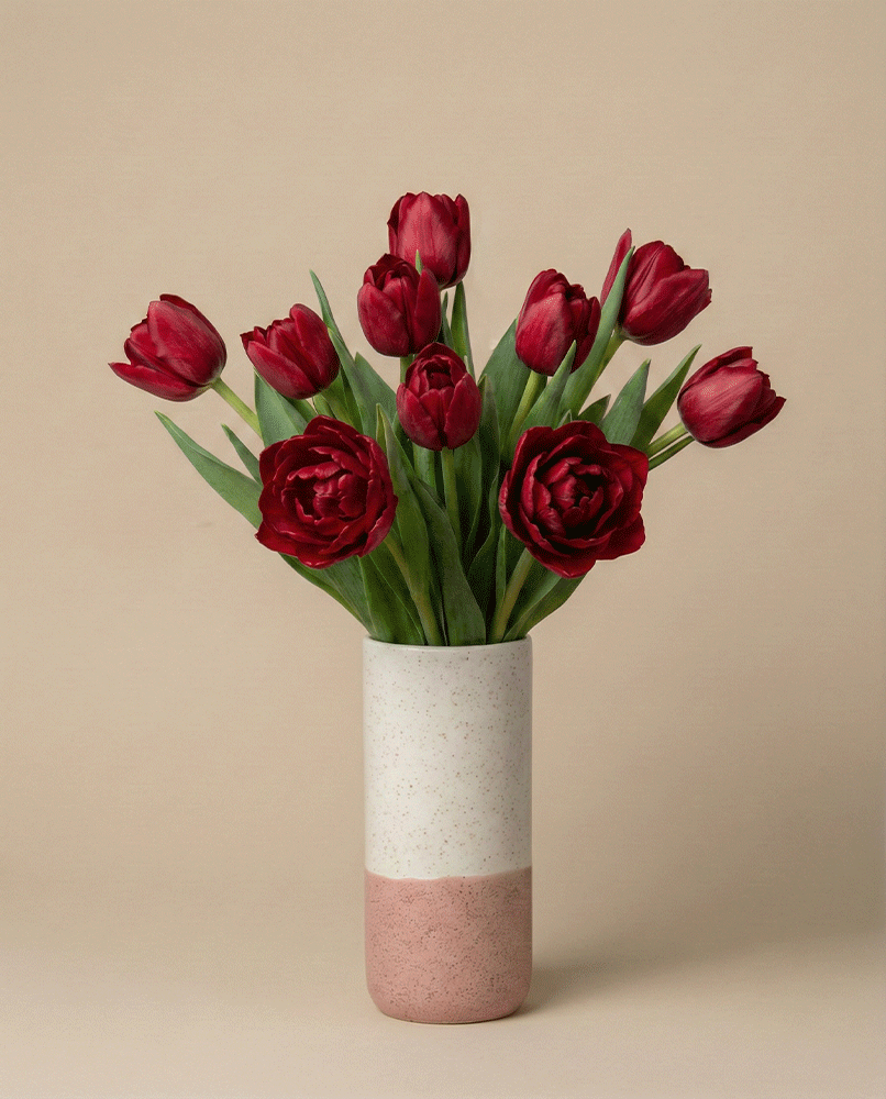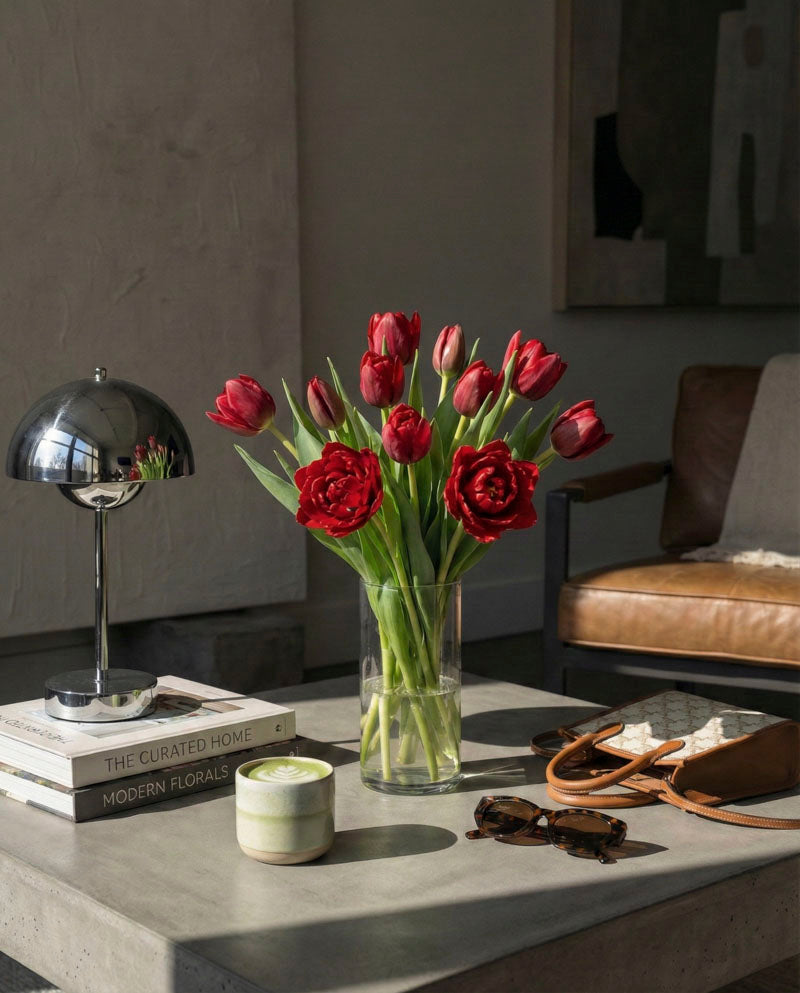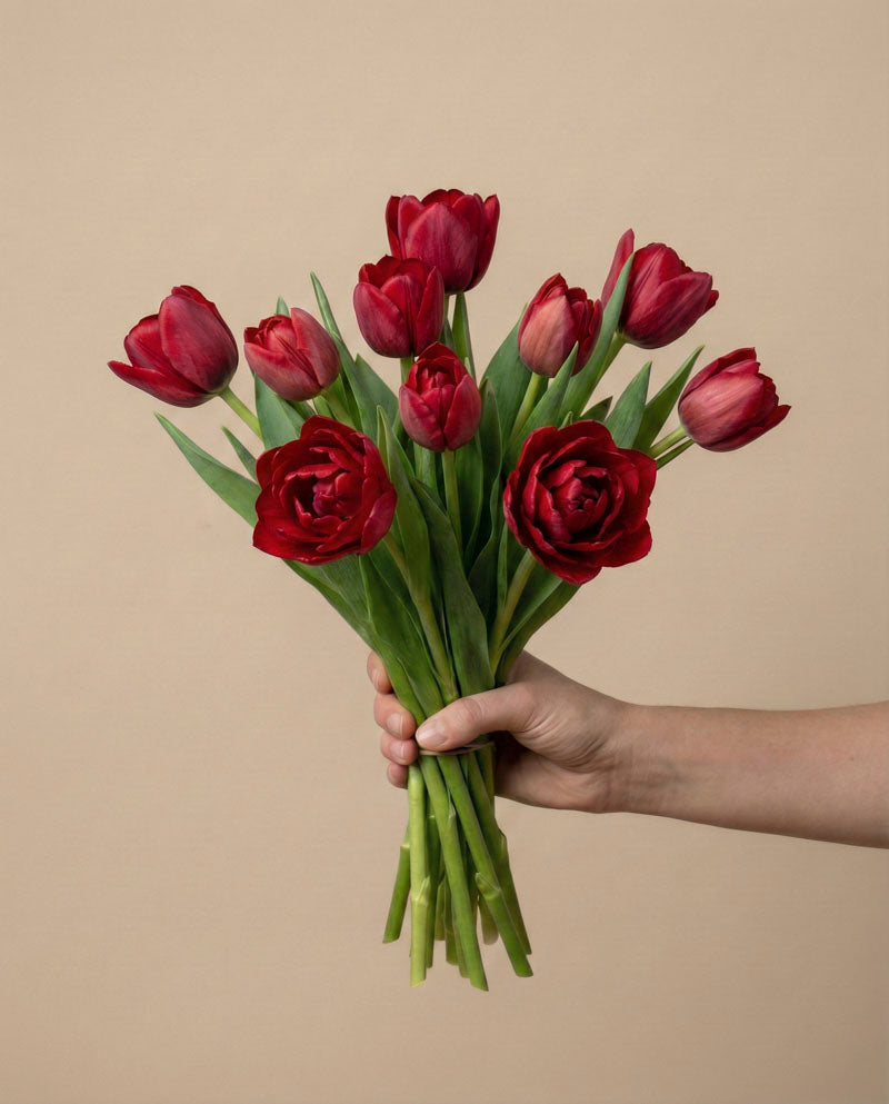 Diese tiefroten Tulpen erzählen von Liebe, Leidenschaft und Mut. 🌷 Sie sind die schönste Art zu sagen: Mein Herz schlägt für dich. ❤️