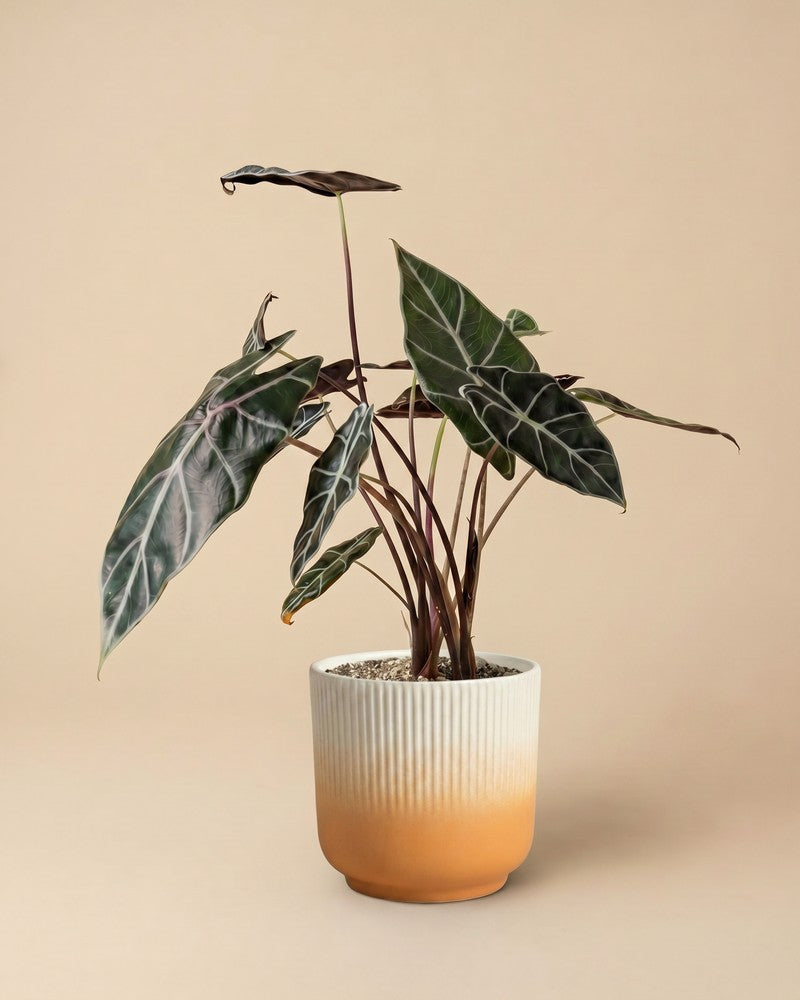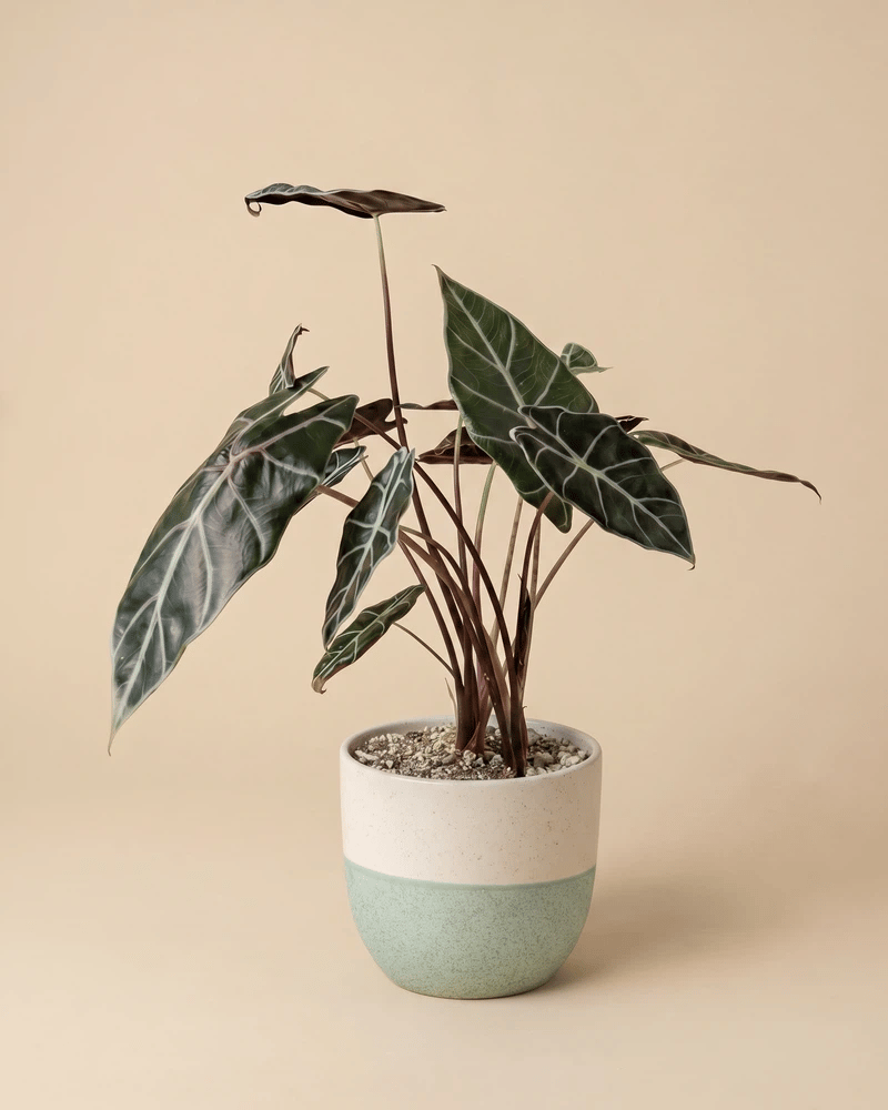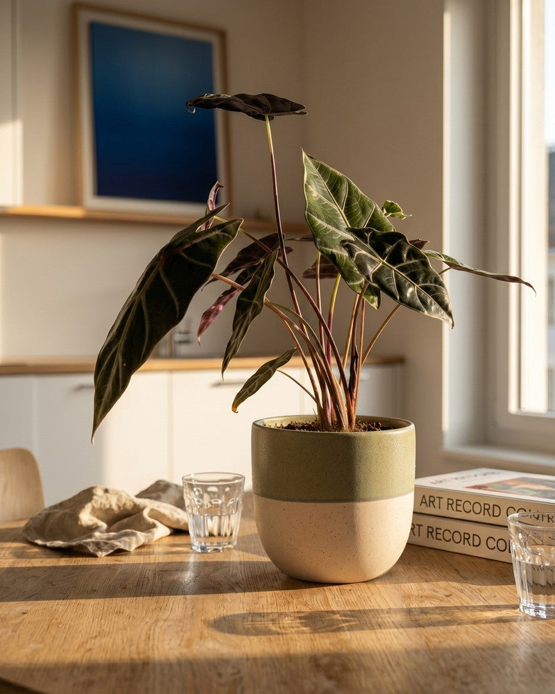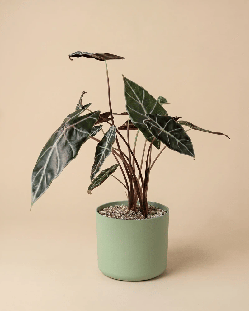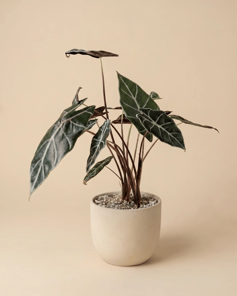 Dunkel, edel, unwiderstehlich. đ€ Die Alocasia 'Red Vein' beeindruckt mit fast schwarzen BlĂ€ttern und auffĂ€lligen hellen Adern. Sie ist ein echter Hingucker fĂŒr alle, die es dramatisch mögen. Als seltene Zimmerpflanze aus der Schweiz macht sie dein Zuhause zum Statement. âïžđ±