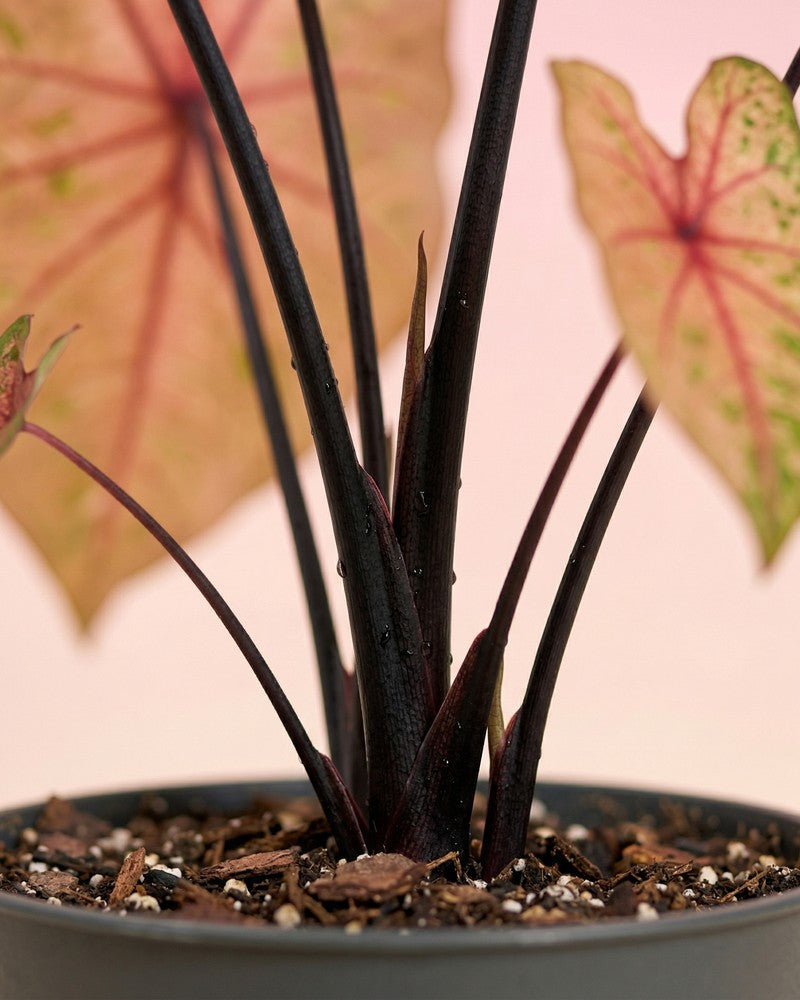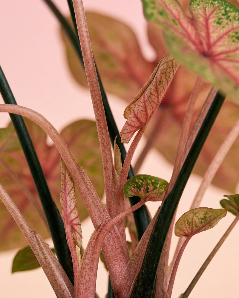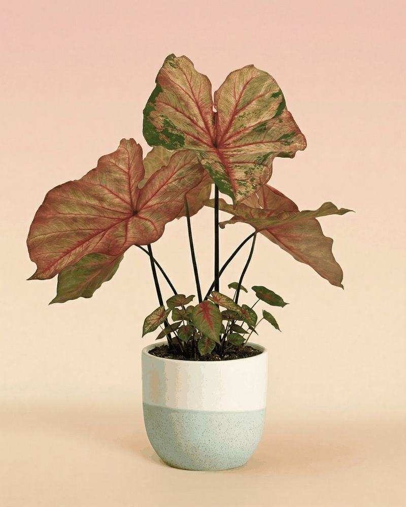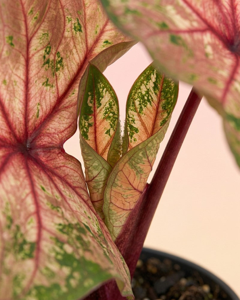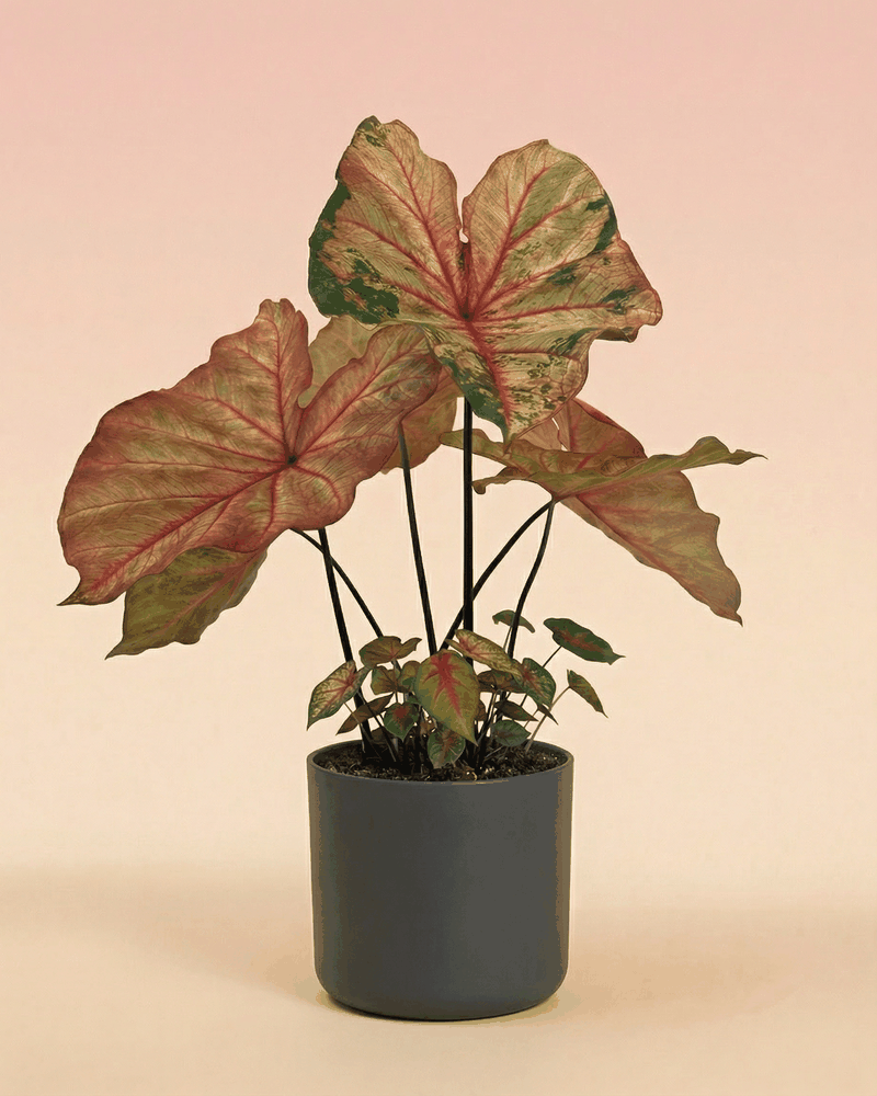 Die Caladium trägt ihre tollen Blätter nur von Frühjahr bis in den Herbst hinein. Danach zieht sie sich komplett in die Erde zurück. Aber keine Panik, deine Pflanze erwacht nach dem Winterschlaf wie ein Phönix wieder aus ihrem Topf! 🌱