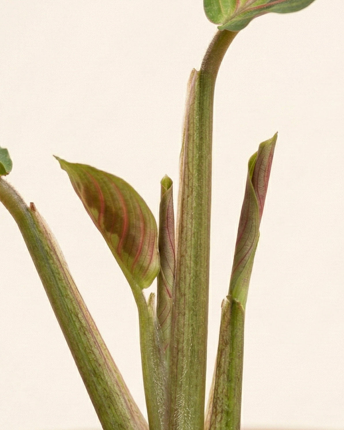 Faszinierend und wunderschön – diese Maranta ‘Fascinator’ strahlt mit ihrem hellen Kern und den roten Blattadern von innen heraus. ❤️💚 Kaum zu glauben, dass sie von dieser Welt ist, oder? Und weisst du was? Sie ist sogar bei uns in der Schweiz gross geworden! 🌱🇨🇭