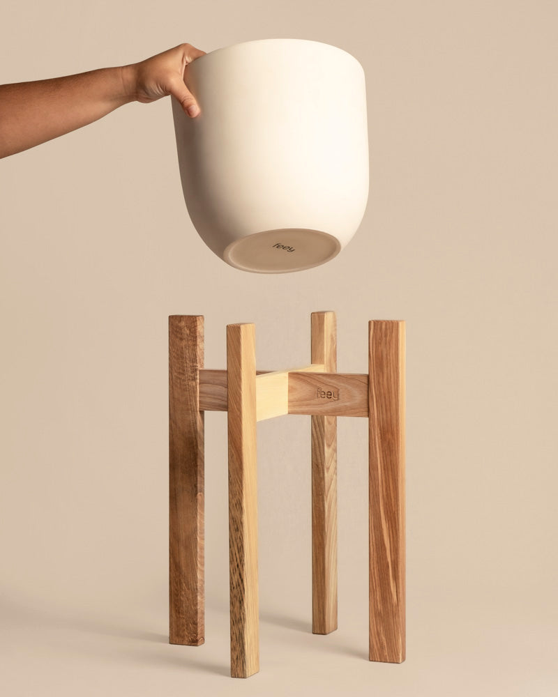 Dieser Holzständer präsentiert deine Pflanze von ihrer besten Seite. Das minimalistische Design setzt einen natürlichen Akzent und überzeugt durch die praktische Konstruktion.