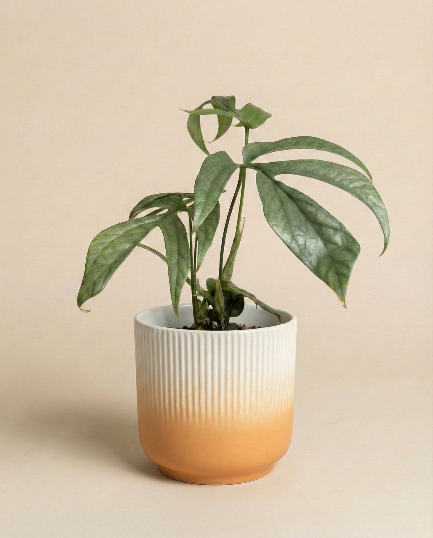 Frühling - Sommer: Bevor du deine Amydrium giesst, solltest du alle 7 Tage den Fingertest anwenden. Stecke dabei deinen Finger etwa 3-4 cm tief in ihr Substrat. Wenn dieses staubtrocken von deiner Haut bröselt, ist deine Hängepflanze durstig.