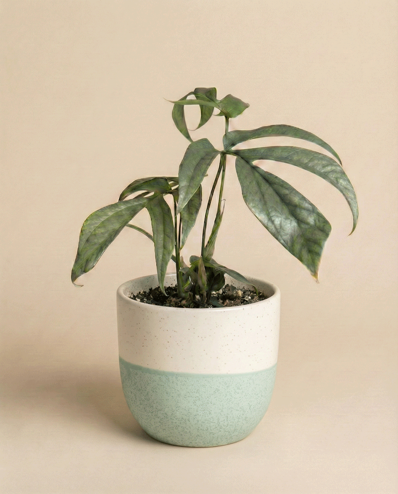 Herbst - Winter: In dieser Zeit macht die silbrige Amydrium eine Wachstumspause und braucht weniger Wasser. Mach den Fingertest nur noch etwa alle 10 Tage.